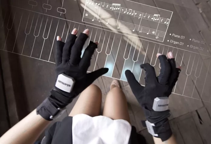 Для игры на пианино нужны только перчатки и компьютерная программа. Сам музыкальный инструмент вовсе не обязателен. Скриншот ролика Sensoryx