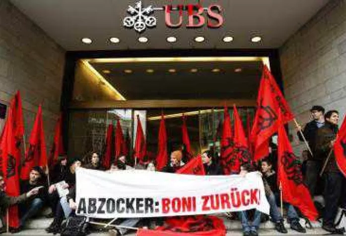 Вчера в двух важнейших городах Швейцарии состоялись протестные манифестации населения, направленные против плана спасения банков в ситуации мирового экономического кризиса. Напоминаем, что Центральный Банк и Швейцарская Банковская Комиссия приняли решение выделить кредит в 62 млрд. франков на увеличение основного капитала банка UBS и ликвидацию его неликвидных позиций.