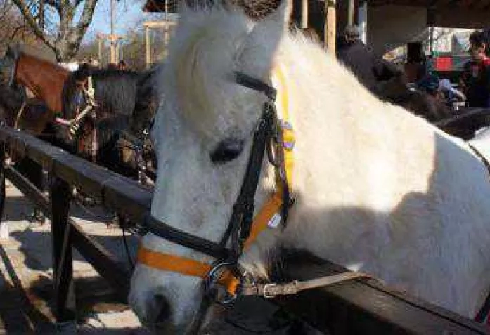 В среду, субботу и воскресенье главное развлечение - катание детей на пони. Подростки выстраивают своих подопечных у изгороди: вот они, рыжие, бурые, в пятнах,  а самый красивый среди них - белоснежный с пушистой гривой. Дети выбирают, на чьей спине хотят прокатиться. Сколько это стоит?
