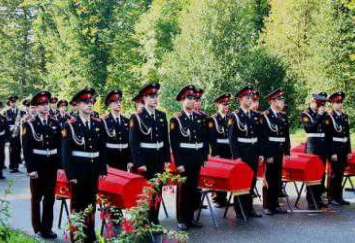 То, что в нейтральной Швейцарии есть могила времен Второй Мировой войны, в которой покоятся советские воины, кажется невероятным. Как? Откуда? Но достаточно побывать в Базеле, увидеть широкий и быстрый Рейн, за поворотом которого - Германия, и сразу многое становится понятным. Так и они смотрели в далеком 1944 году - только с другой, немецкой стороны. Им удалось почти невозможное: выжить в военной мясорубке, пройти через все ужасы плена, сбежать из лагеря, осталось только переплыть реку, и там - свобода. Они сделали и это. Пули (кстати, неизвестно, чьи именно, настигли их в Рейне, совсем близко от швейцарской территории. Четыре советских солдата - Григорий Титов, Иван Сумачев, и еще двое, имена которых так и остались неизвестными. Спустя 64 года четыре красных гроба были торжественно преданы земле под звуки военного оркестра Суворовского училища в присуствии делегаций посольств России, Азербайджана, Беларуси, Казахстана, Киргизии, Узбекистана и Украины. История Титова, Сумачева и их товарищей не была единичной. Всего на мраморном обелиске со звездой два десятка фамилий советских солдат разных национальностей, погибших на швейцарской земле. Имена их сохранились, а вот могилы - не все. За четырьями из них доселе следила наша соотечественница Тамара Симон, именно захороненные в них останки были перенесены вчера, по инициативе посольства России, на Почетную аллею кладбища Хернли. Отныне их содержание - обязанность Российского государства. На кладбище Хернли ежегодно 9-го мая служится молебен и проводится официальная церемония возложения цветов. Хотя цветы у этого памятника лежат почти всегда. Выходцы из бывшего Советского Союза, проживающие в Базеле и окрестностях, приходят сюда и без всяких официальных церемоний, просто чтобы помянуть своих отцов, дедов и всех советских солдат, сложивших головы на той войне.