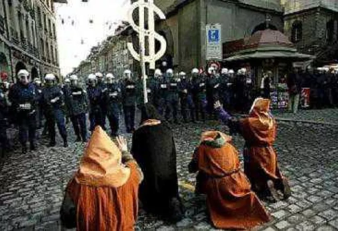 Как свидетельствует публикуемая фотография, далеко не все жители Давоса и округи рады такому скоплению важных персон.