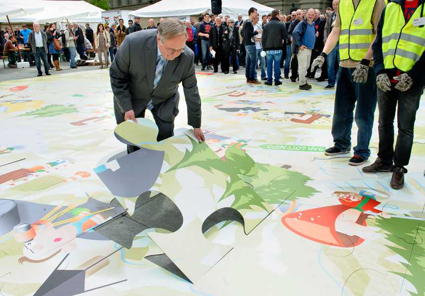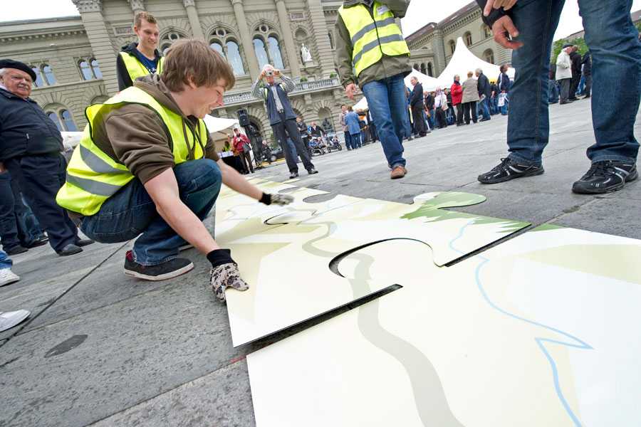 В праздновании приняли участие все 26 кантонов Швейцарии. На радость филателистам выпущена особая марка «100 лет кадастровой регистрации». А в Берне перед зданием Федерального Дворца сложили самую большую картографическую мозаику Швейцарии. Джазовые концерты, викторины, тестирование измерительных приборов, запуск в небо воздушных шаров и разнообразие тематических выставок – свой план мероприятий был у каждого из кантонов. В эти дни специалисты отрасли раскрыли особенности работы земельного кадастра, кадастровой съемки и географической информации.