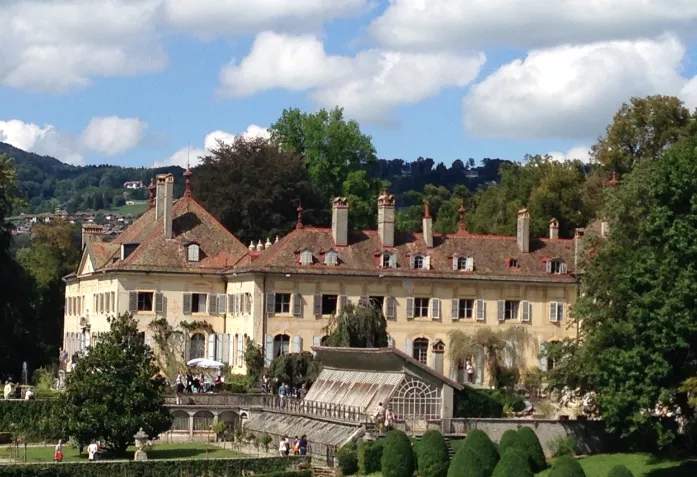 Путешествуя по Швейцарии, постоянно слышишь французское слово «шато» (château). Чаще всего на русский язык оно переводится как «замок». Но, честно говоря, не многие здания, гордо так именуемые, ими являются. Особенно если вам довелось повидать, например, замки Луары во Франции или замки Людовика II в Баварии. Еще слово «шато» переводят как «дворец»: Château de Versaille - Версальский дворец. Дворцов такого масштаба в Швейцарии не найдешь. Поэтому нам кажется правильнее, рассказывая о Швейцарии, называть ее «шато» усадьбами, резиденциями. Собственно, так оно было и во Франции, где всякий мало-мальски приличный особняк аристократа назывался дворцом. В Швейцарии же приличные усадьбы, которые хотя бы с натяжкой достойны такого звания, можно пересчитать по пальцам. Причина тут не только практическое отсутствие сословной аристократии, но и такие типичные для швейцарцев (особенно протестантов) качества, как нелюбовь к роскоши, осуждение излишеств, стремление не выставлять напоказ свою состоятельность.