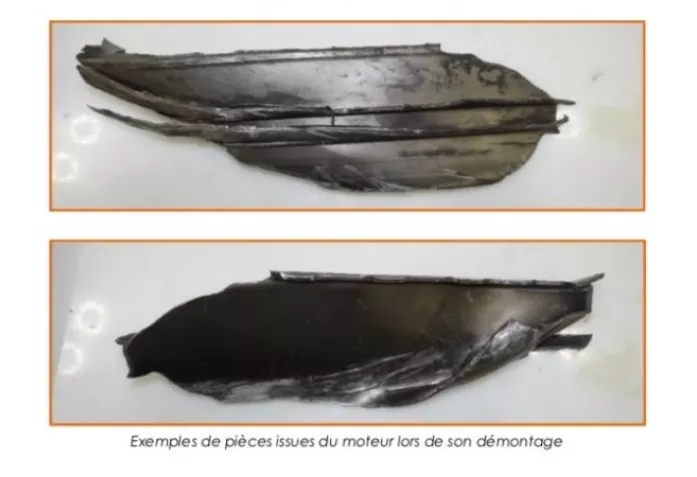 После осмотра двигателя выяснилось, что он потерял некоторые детали компрессора низкого давления – длина титановых изделий, вероятно, не превышает 30 см. Нашедших просят обращаться с деталями очень осторожно, так как у них острые края. По информации BEA, самолеты крайне редко теряют в полете детали двигателей. Другой случай произошел с воздушным судном A380-800 компании Air France, летевшим из Парижа в Лос-Анджелес – тогда часть двигателя упала в Гренландии, 150-килограммовую пропажу недавно нашли под четырехметровым слоем снега и льда.