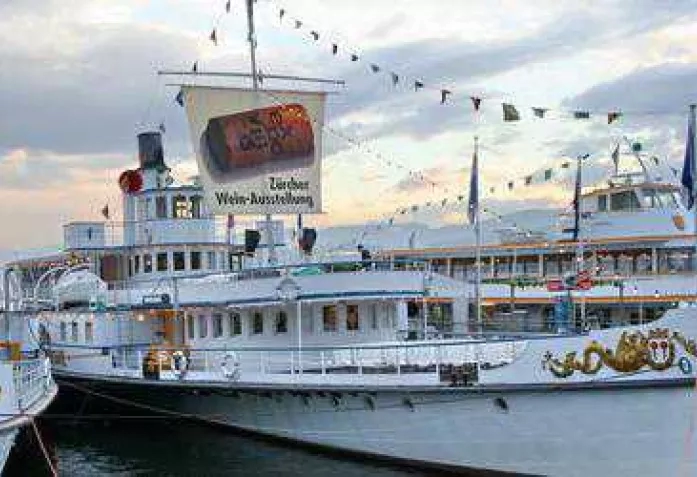 Проводить винную выставку на воде - блестящая затея. Во-первых, это вызывает сразу ворох приятных ассоциаций - моряцких, пиратских, контрабандистских, во-вторых, если после энного количества дегустаций вы почувствуете, что пол качается у вас под ногами, достаточно вспомнить, что это не пол, а палуба, и сразу все становится на свои места. Ведь на то она и палуба, чтобы раскачиваться. 12 судов, 165 выставочных стендов, 4000 сортов вина, 150000 бутылок. Если считать виноделие искусством (а так оно и есть), то это почти Эрмитаж. Или, по-крайней мере, Кунстхаус. Сведущие люди знают, не стоит пытаться посмотреть весь Эрмитаж за один раз. Нужно заранее четко определить, что интересует в первую очередь, что во вторую. Для меня предметом первоочередного интереса стал стенд виноторговой компании Wolga, где, как указано в каталоге, был представлен большой выбор вин из Грузии и Украины. Киндзмараули в Цюрихе - такого пропустить нельзя, поэтому я направился прямиком на пароход под названием Linth, минуя все прочие соблазны.