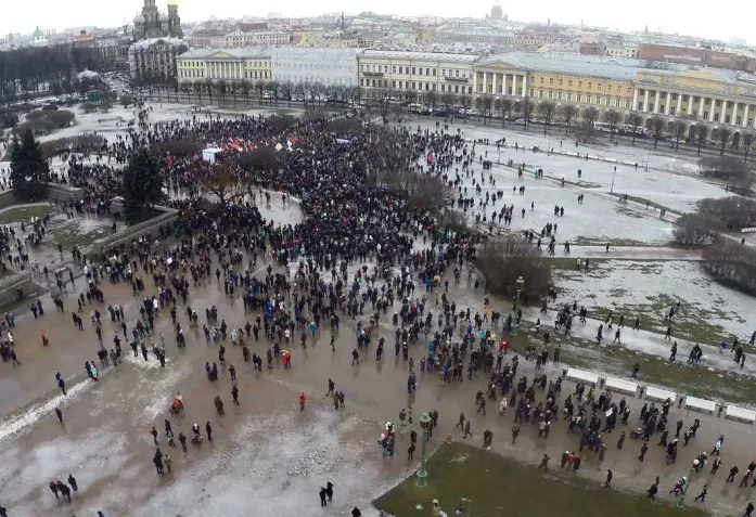 Было воскресенье, 1 марта. На Марсовом поле Санкт-Петербурга, где с 1919 года горит вечный огонь в честь «всех жертв тирании», запланированная демонстрация «Против войны! Против кризиса!» превратилась, как и в Москве, в траурный митинг памяти Бориса Немцова, убитого накануне под стенами Кремля. Семь-восемь тысяч участников точно. Всех возрастов, много молодежи, некоторые задрапированы в украинский флаг. «Борис! Будем бороться!», «Пропаганда убивает», «Диагноз: маньяк», «Долой спекуляцию! Национализируем корпорации!», или вот еще «Кремль=террористическая территория». Пара плакатов прославляют пилота Надежду Савченко, украинскую Жанну д’Aрк. Атмосфера мирная, очень мало полиции, люди, кажется, разделились на протестные семьи: анархисты, национал-большевики (несколько плакатов с запрещенными лозунгами изъяты полицией), коммунисты, либералы или верующие («Не убий!» на церковнославянском).