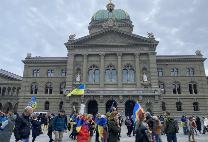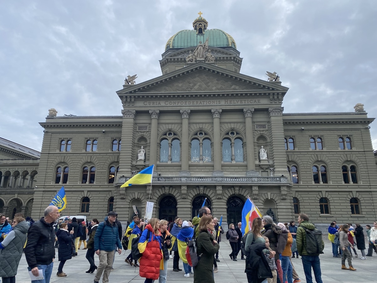 Митинг к годовщине начала войны в Украине, Федеральная площадь в Берне, 22 февраля 2025 года. Фото: Nashagazeta.ch