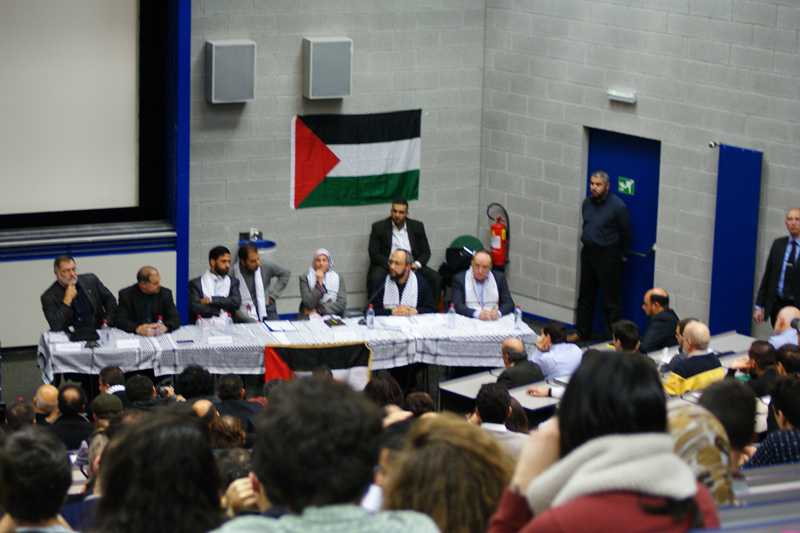 Наконец, на сцену вышел главный персонаж вечера, которого все почтительно называли «профессор Мушир». Он произнес пламенную речь на арабском, пассажи которой переводчик синхронно переводил на французский. Сразу стало видно, что в зале среди четырехсот собравшихся не менее трех сотен прекрасно понимают  арабский – аплодисменты взрывали речь еще до перевода. Мушир аль-Масри напомнил, что сегодня 23 депутата ХАМАС содержатся в тюрьмах Израиля, и еще четверым препятствуют в исполнении их работы.