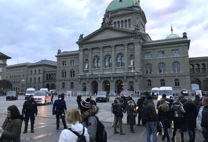 Пока правительство следило за развитием ситуации, корона-скептики провели 19 декабря несанкционированную демонстрацию в Берне © nashagazeta.ch