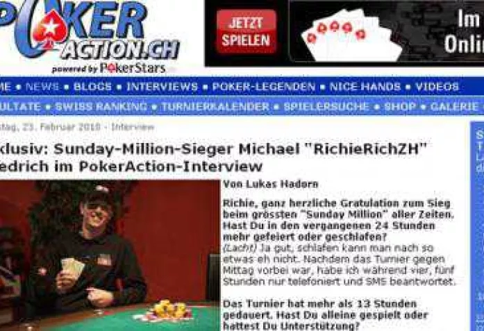 36-летний Михаэль Фридрих, управляющий капиталами, провел самую азартную ночь своей жизни перед компьютером у себя дома, в Цюрихе. Крупнейший онлайн-матч по покеру состоялся с 21 на 22 февраля и длился 13 часов 20 минут.