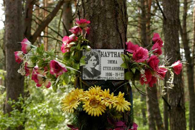 <p>Памятная табличка на дереве в Быковнянском лесу около Киева, месте массовых захоронений жертв сталинских репрессий (© Tomasz Kizny)</p>
