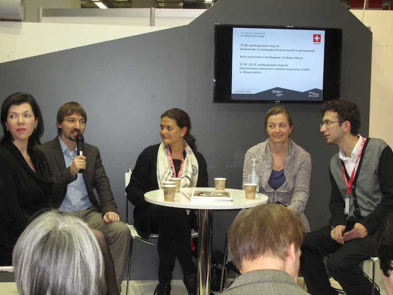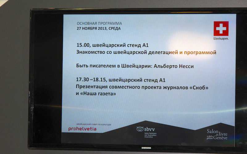 С 27 ноября по 1 декабря 2013 года в Центральном доме художника на Крымском валу в Москве проходила 15-я Международная ярмарка интеллектуальной литературы Non/Fictio№1, почетным гостем которой была Швейцария. В составе швейцарской делегации на ярмарке побывала и главный редактор Нашей Газеты.ch. С ее впечатлениями вы можете ознакомиться здесь, а пока - несколько картинок с выставки. (Все фото - Nashagazeta.ch)