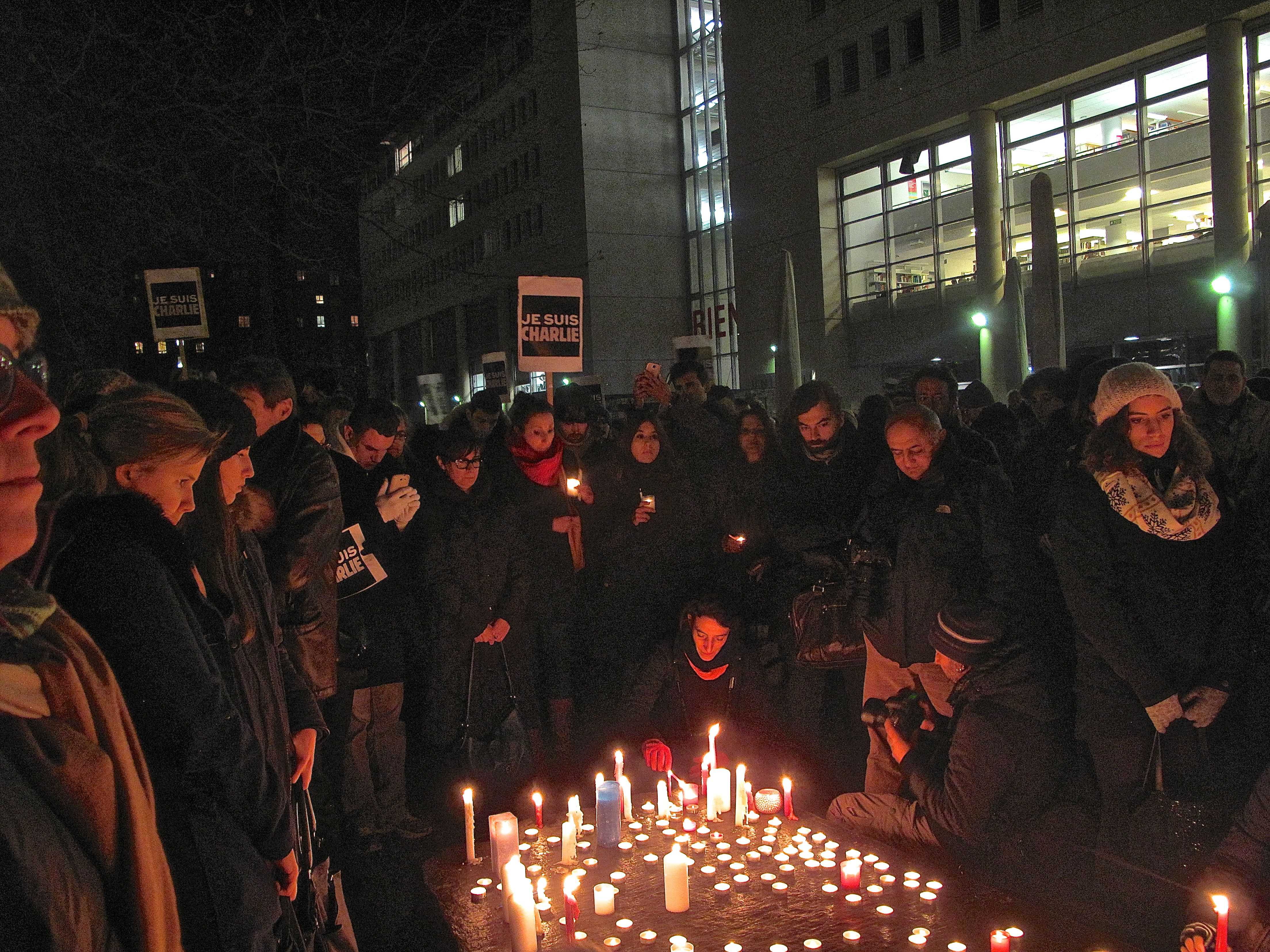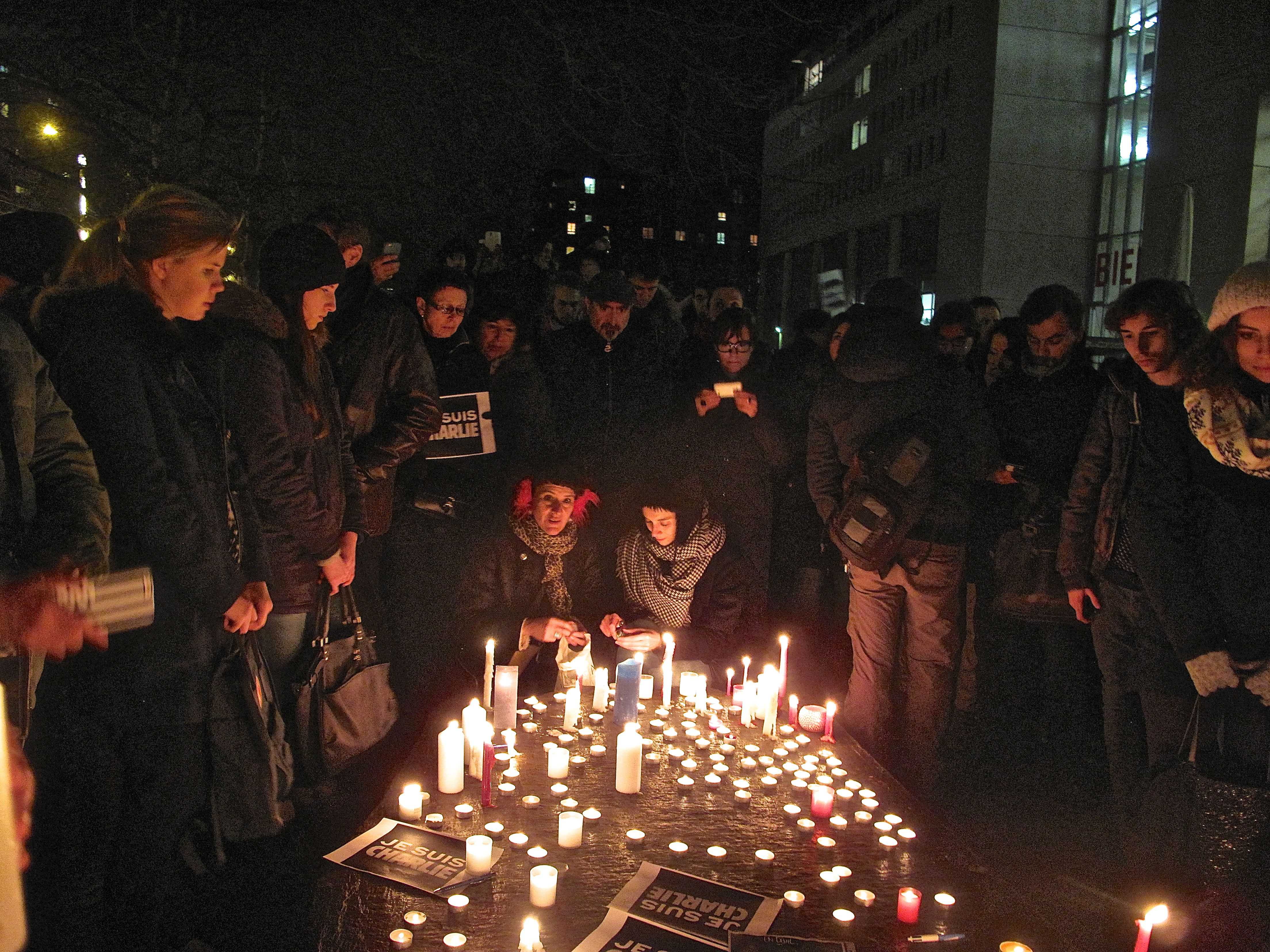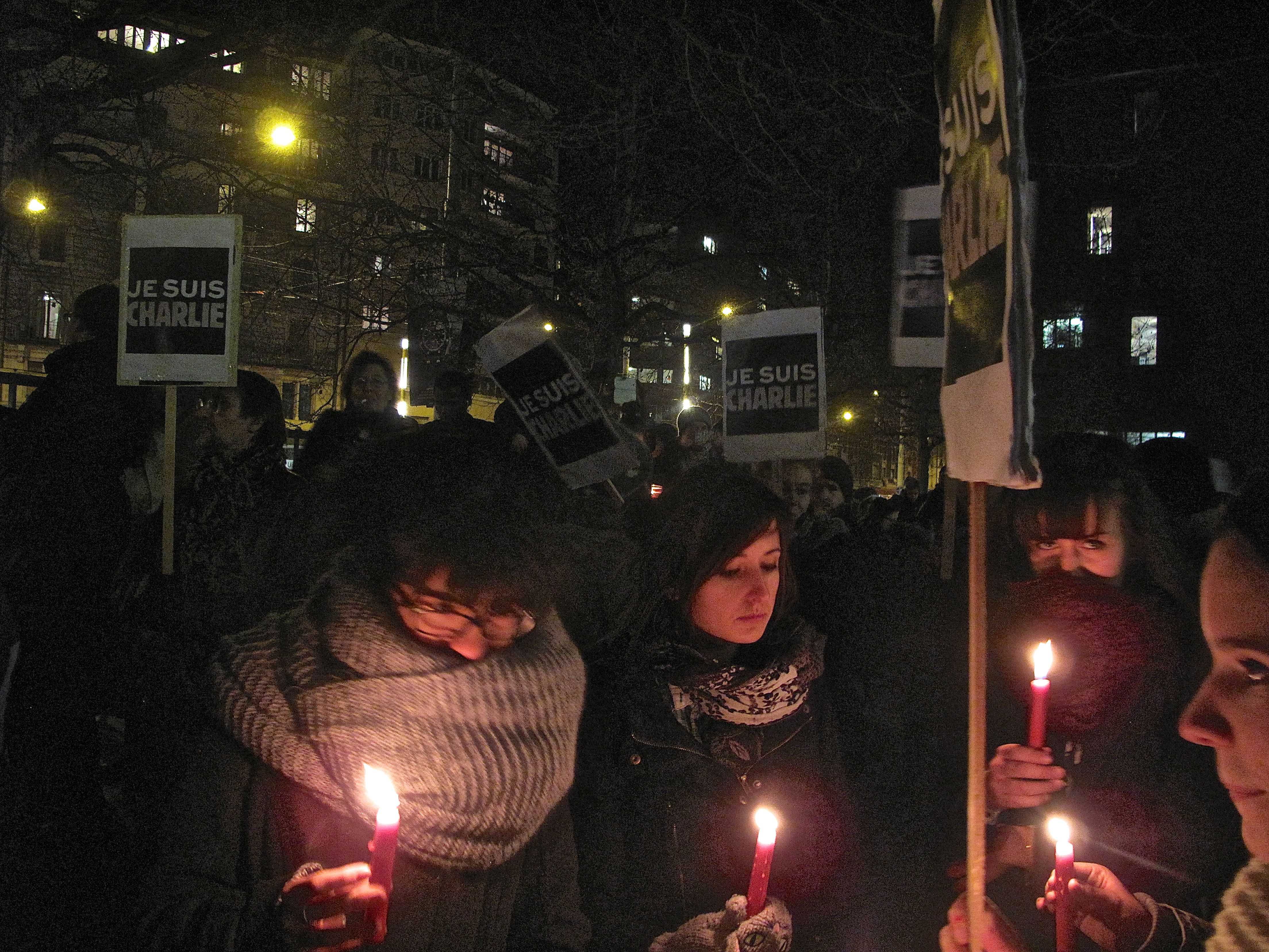 Вечером на площадь перед Женевским университетом вышли сотни жителей города. Они почтили память погибших и выразили поддержку Charlie Hebdo. Многие держали в руках свечи, плакаты со словами «Je suis Charlie» («Я – Шарли») и приносили карандаши – основной рабочий инструмент погибших карикатуристов.
