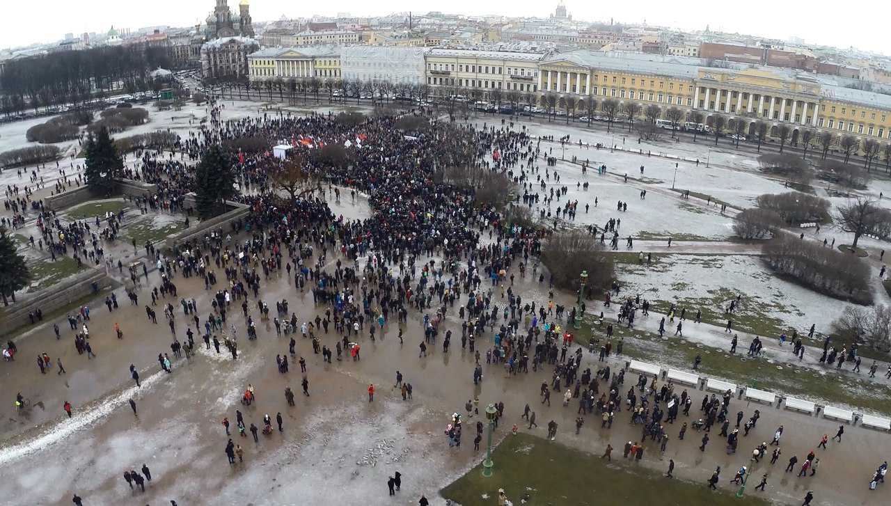 Было воскресенье, 1 марта. На Марсовом поле Санкт-Петербурга, где с 1919 года горит вечный огонь в честь «всех жертв тирании», запланированная демонстрация «Против войны! Против кризиса!» превратилась, как и в Москве, в траурный митинг памяти Бориса Немцова, убитого накануне под стенами Кремля. Семь-восемь тысяч участников точно. Всех возрастов, много молодежи, некоторые задрапированы в украинский флаг. «Борис! Будем бороться!», «Пропаганда убивает», «Диагноз: маньяк», «Долой спекуляцию! Национализируем корпорации!», или вот еще «Кремль=террористическая территория». Пара плакатов прославляют пилота Надежду Савченко, украинскую Жанну д’Aрк. Атмосфера мирная, очень мало полиции, люди, кажется, разделились на протестные семьи: анархисты, национал-большевики (несколько плакатов с запрещенными лозунгами изъяты полицией), коммунисты, либералы или верующие («Не убий!» на церковнославянском).