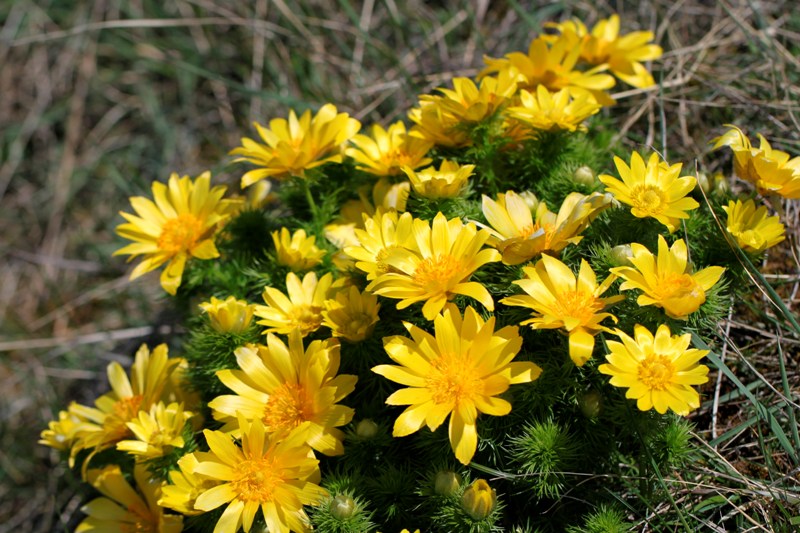 Произошло это после схода ледников. Как предполагают специалисты, адонис распространился во всей долине Роны, однако теперь его можно увидеть только на левом берегу реки (или, как любят говорить в Вале – на «левом склоне»). «Нескольких солнечных дней достаточно, чтобы сквозь сухую траву пробились зеленоватые бутоны, из которых вскоре появляются ярко-желтые лепестки», - отмечается на сайте деревни Шарра. Еще немного – и весь склон вспыхивает тысячами маленьких солнц. Долина Роны – единственный регион Швейцарии, отвечающий требованиям взыскательного растения: сухие неплодородные луга, известковый субстрат, теплое лето, холодная зима, небольшое количество осадков.