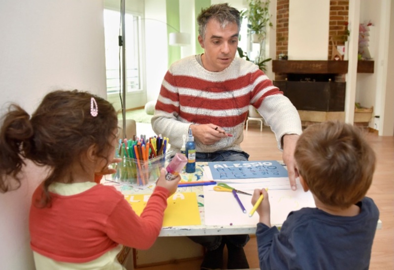 Всего в кантоне Во чужими детьми занимаются тринадцать мужчин, и один из них – житель местечка Ми Давид Панетто. Наш герой доволен выбранным занятием и ни на что не жалуется. «Некоторые думают, что занятия с детьми вызывают стресс, но я не из их числа!» - поделился он с журналистами газеты 24heures. Давиду чуть больше сорока лет, и он преспокойно играет с двумя четырехлетними малышами, которые резвятся в его гостиной. Задачу облегчает то, что на день у него осталась лишь одна девочка, а мальчик – его сын. В другие дни к нему приводят больше детей, но «няня» это не пугает, он рад проводить с ними время. Тем, кто сомневается, в состоянии ли мужчина присмотреть за малышом так, чтобы тот был сыт и доволен играми, да еще и получил приличную дозу ненавязчивого воспитания, Давид готов показать аттестат «дневного папы», полученный после курса обучения, организованного «Обществом дневных мам и пап» (CIAFJ). Кроме того, у него уже есть несколько лет опыта, а потому он быстро находит общий язык с новыми маленькими знакомыми.