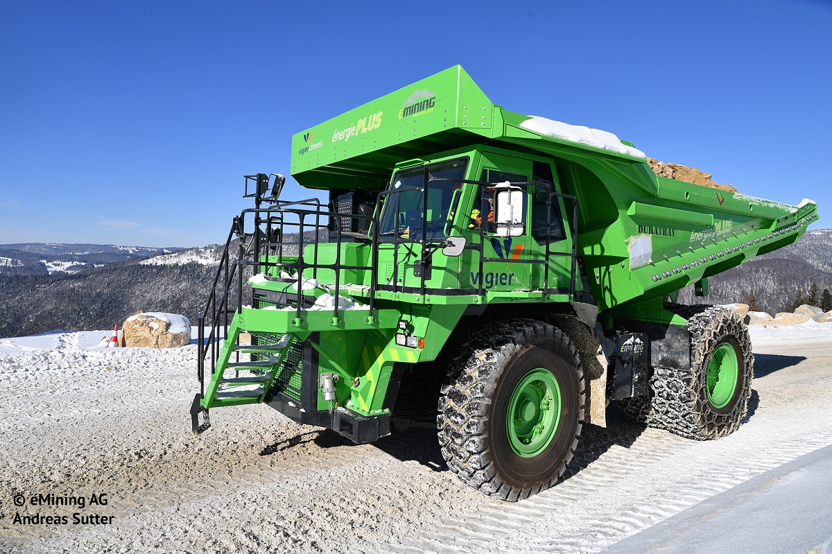 Машина предназначена для передвижения по холмистой местности с уклоном около 13% и задействована в карьере недалеко от Биля, где добывается сырье для цемента. Она предусмотрена для транспортировки осадочных и камнеподобных горных пород – известняка и мергеля – из рудника, находящегося на возвышенности, к перерабатывающему заводу, расположенному в долине. Пустой грузовик поднимается в гору и спускается оттуда нагруженным рудой. Во время спуска аккумуляторная батарея самосвала заряжается за счет вырабатываемой при торможении энергии. Ее достаточно, чтобы разгруженный самосвал смог снова подняться к руднику. Теоретически грузовик вообще не нужно заряжать от электросети, и он даже сможет отдавать неизрасходованную энергию. По предварительным расчетам, в течение ближайших 10 лет экологичный грузовой автомобиль перевезет 3 000 000 тонн руды, сэкономив при этом 500 000 литров дизельного топлива и 1 300 тонн углекислого газа.