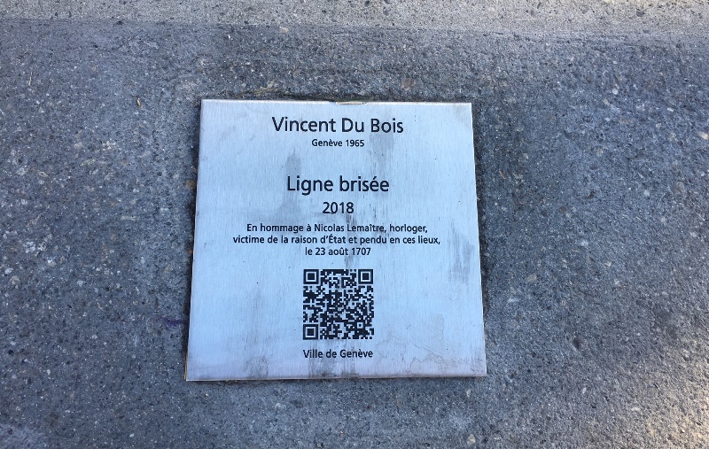 Памятник, установленный в эти дни на площади Пленпале, называется «Сломанная линия» («Ligne brisée»), он представляет собой каменный блок с усеченным верхом, где нанесен QR-код. Скульптура напоминает одновременно трибуну оратора, плаху и обрезанную колонну – аллюзия на оборванную жизнь. Увы, о Николя Леметре женевцы не вспоминали более 300 лет. По сути, это просто фундамент колонны без статуи: «Как беззаконная комета в кругу расчисленном светил…»