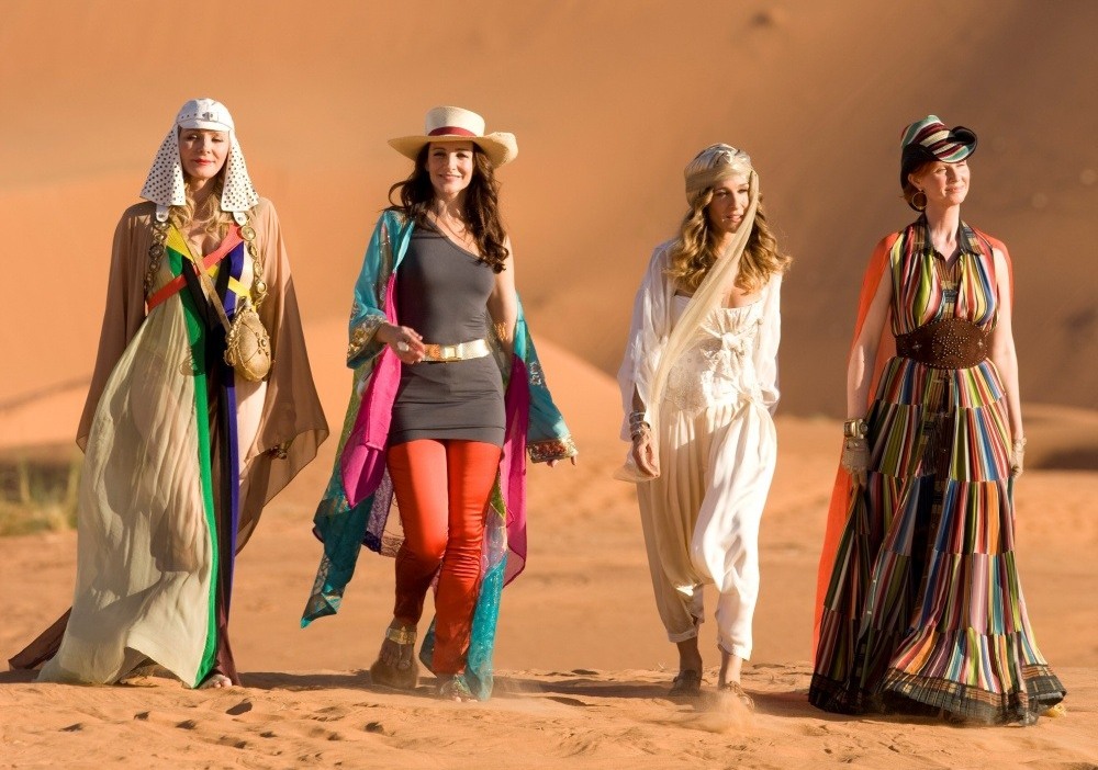 Эти дамы знают, как модно выглядеть даже в 40-градусную жару. Кадр из фильма «Секс в большом городе-2».
