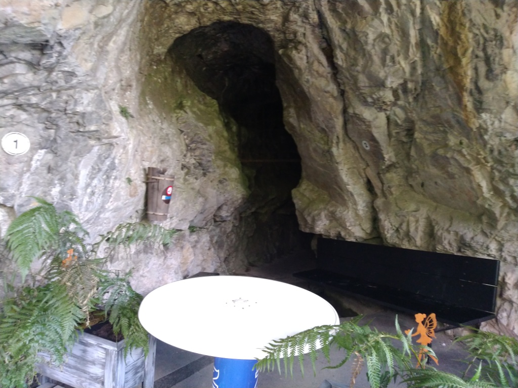 Чтобы добраться до Волшебного грота, предстоит потратить немало сил, преодолевая зигзаги проложенной наверх тропы. Если вы не привыкли ходить пешком, то такая прогулка все равно стоит затраченных усилий, поскольку с панорамной террасы ресторанчика, расположившегося на отвесном склоне у входа в пещеру, открывается восхитительный вид на горы и долину. В ресторане подают, в зависимости от сезона, валезанские блюда и другие угощения. В разные дни меню включает, например, кальмаров в соусе тартар, свиные отбивные в горчичном маринаде, картофель по-деревенски и т.д.