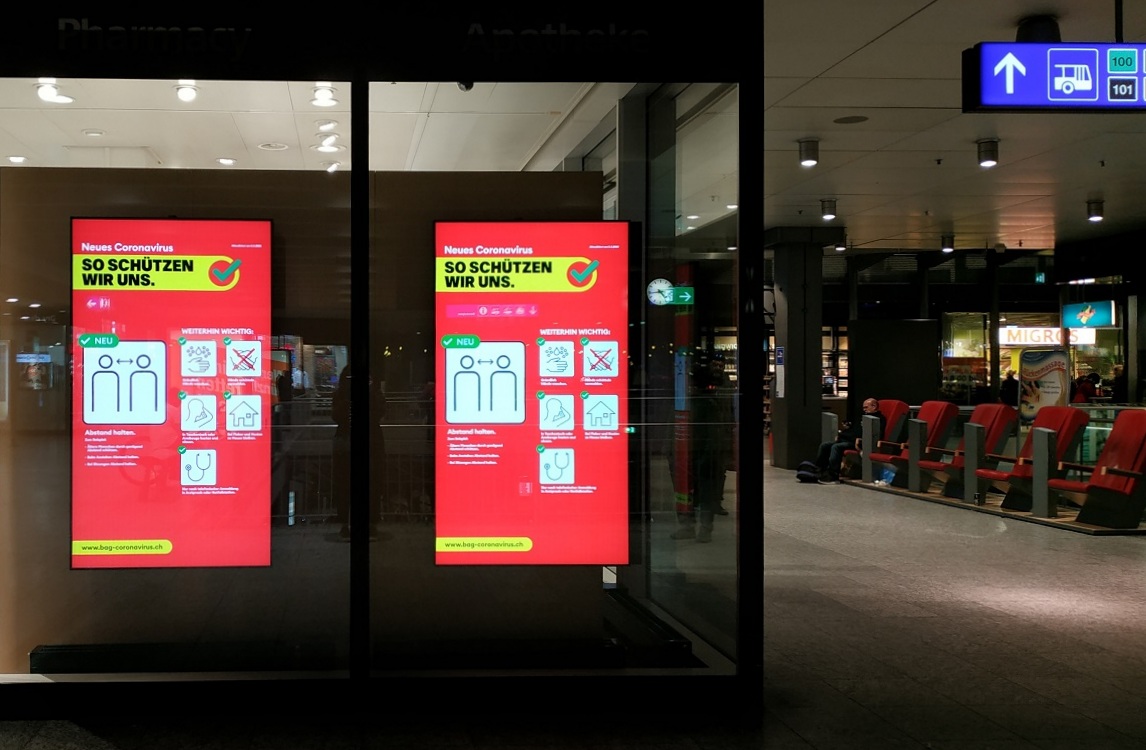 Афиши с правилами гигиены на бернском вокзале © Nashagazeta.ch