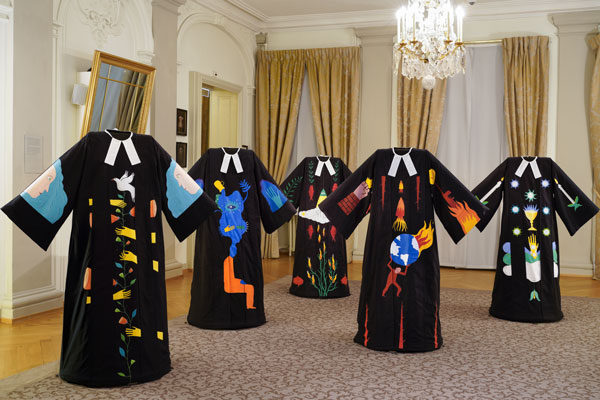Отдельную часть выставки составляет выставка протестантских одеяний, «дополненных» известной швейцарской Альбертиной, прославившейся прежде всего как иллюстратор книг для детей – в мае 2020 года даже пандемия коронавирус не помещала ей получить Премию Андерсена, считающуюся «нобелевкой» в области детской литературы.