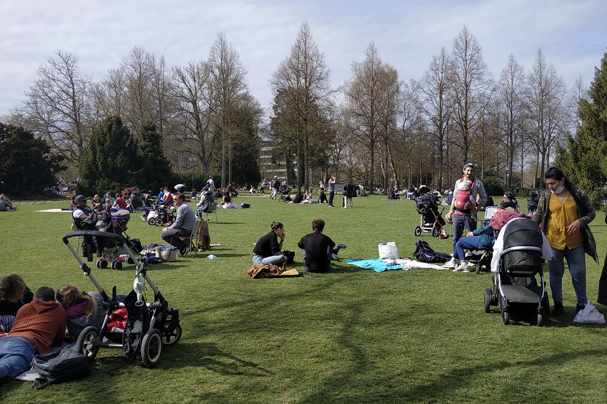 Лужайка вместо террасы кафе - особенность ковидной эпохи. Фото: Nashagazeta.ch