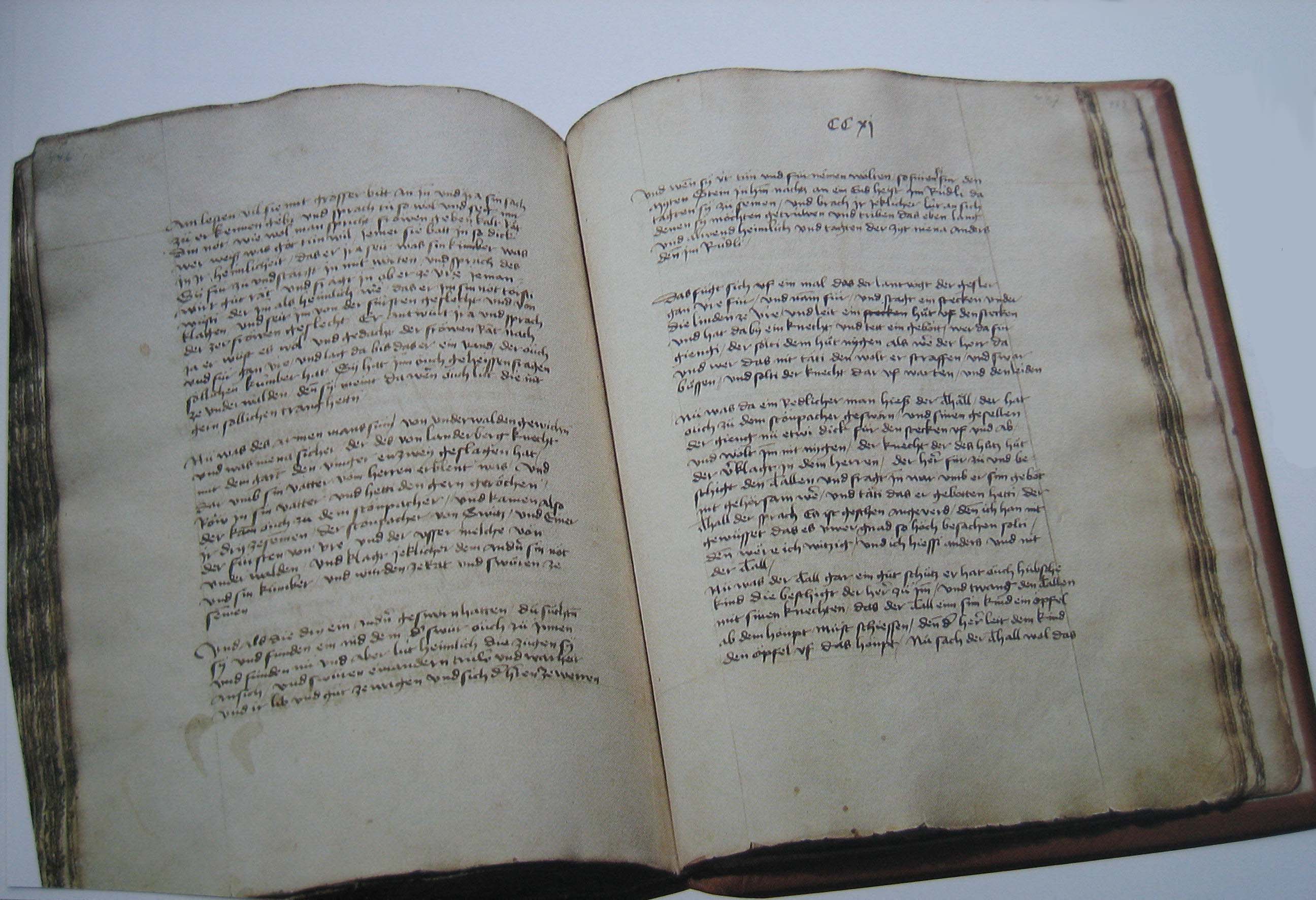 Вторая часть значительно более короткая, всего 22 страницы - описывает историю кантонов УриШвиц и Унтервальден. Именно здесь впервые изложены, на основе источников середины XIV столетия, основные моменты ставшей впоследствии легендарной истории обретения швейцарцами их независимости от иноземных властителей и появляются образы, ставшие впоследствии хрестоматийными: злой фогт (на современном языке чиновник), грубо нарушавший границы своей компетенции и издевавшийся над слабыми и бедными; путь, приведший к «клятве Рютли» и созданию Конфедерации, и т. д. Здесь также сообщается о некоем «Thall» (ныне главном национальном герое Швейцарии Вильгельме Телле) и его противнике «Gijssler», ландфогте Ури и Швица Германе Гесслере, повесившем шляпу эрцгерцога на липе центральной площади в городе Альтдорф, которую сейчас украшает памятник тому самому «некоему Теллю», перед котором фотографируются все туристы.