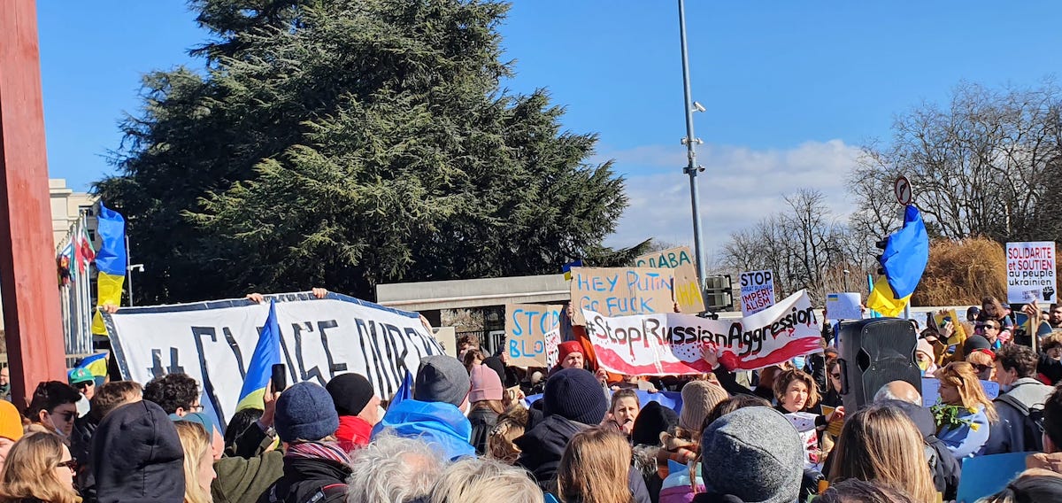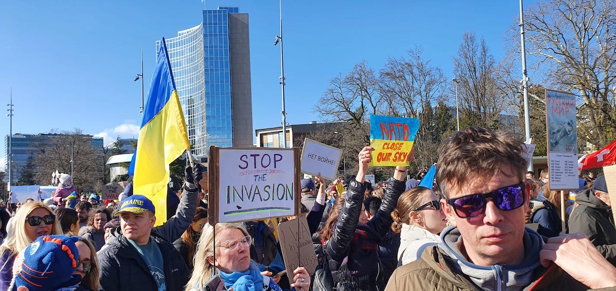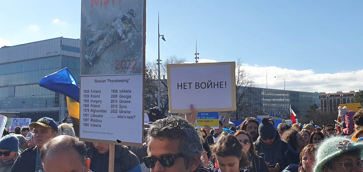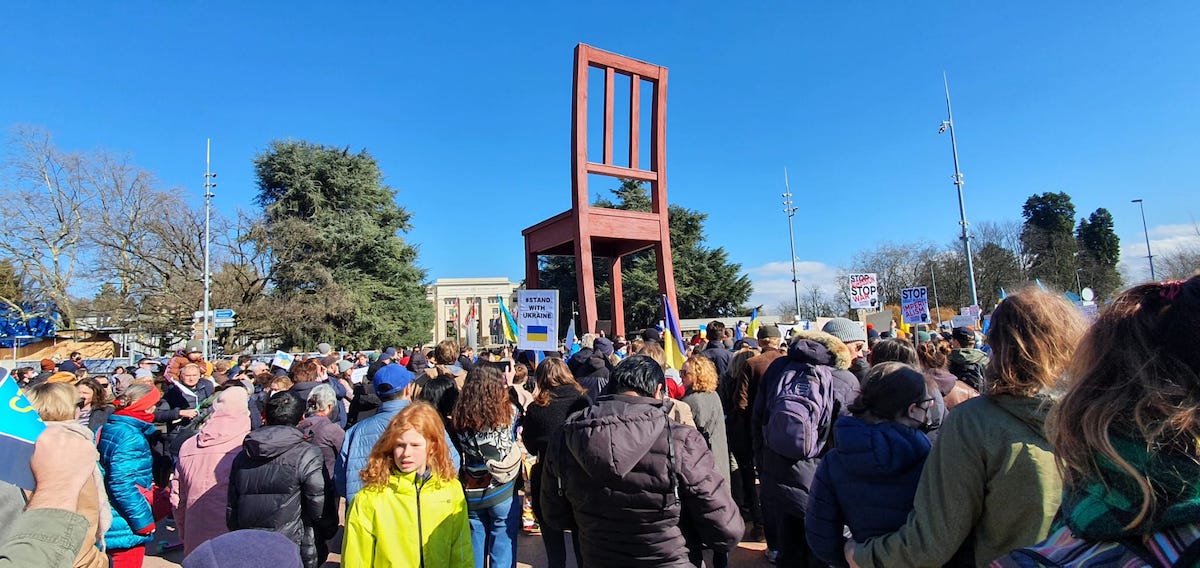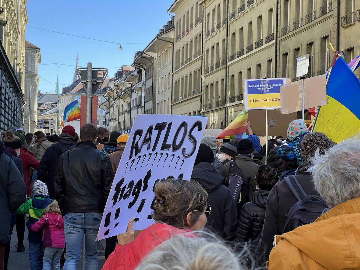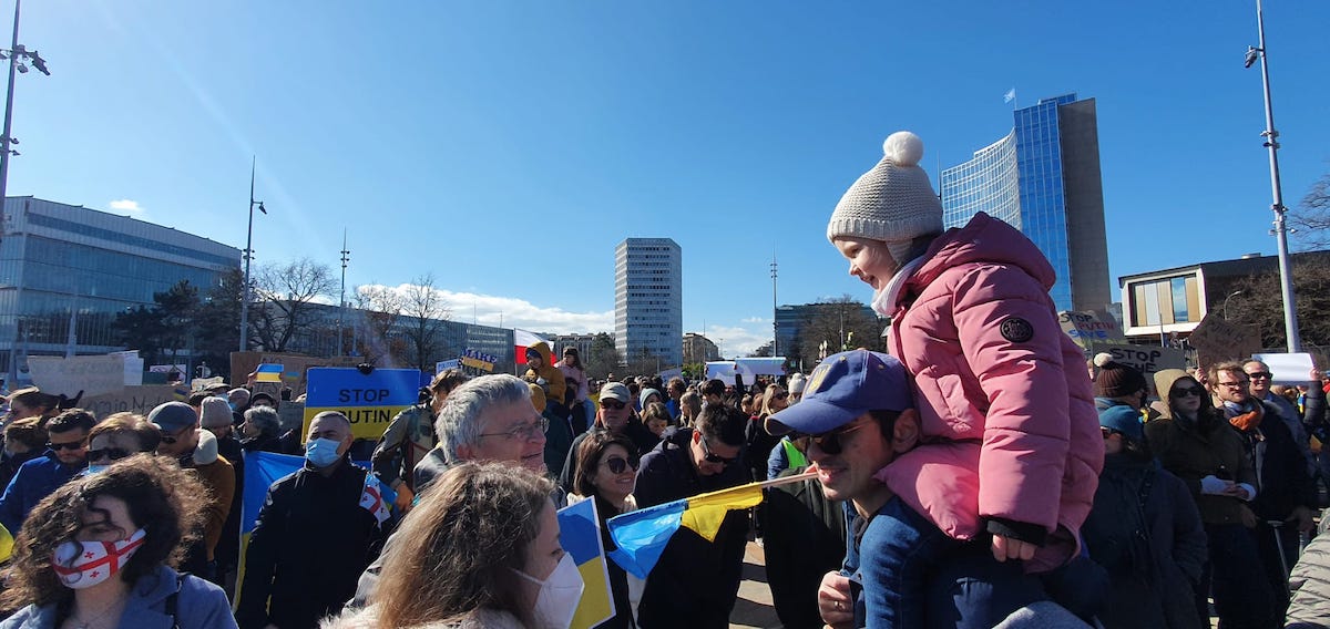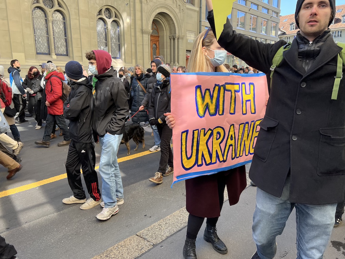 26 февраля в Берне и Женеве прошли антивоенные демонстрации и акции в поддержку украинского народа. По оценкам организаторов, в Берне на улицы вышли около 20 000 человек – это крупнейшая демонстрация в поддержку мира в городе с 2003 года. Кроме того, на бернском здании Эрлахерхоф, где заседает мэр города, был поднят украинский флаг. В Женеве, по словам очевидецев, собрались как минимум полторы тысячи человек. Протестующие держали украинские флаги, а также плакаты с призывами остановить войну и ввести санкции против России. Среди демонстрантов – люди самых разных возрастов и национальностей, в том числе швейцарцы, украинцы, белорусы и россияне. Фото из Берна – Nashagazeta.ch; фото из Женевы предоставлены участниками акции. Нажмите на фото, чтобы увидеть его полностью.