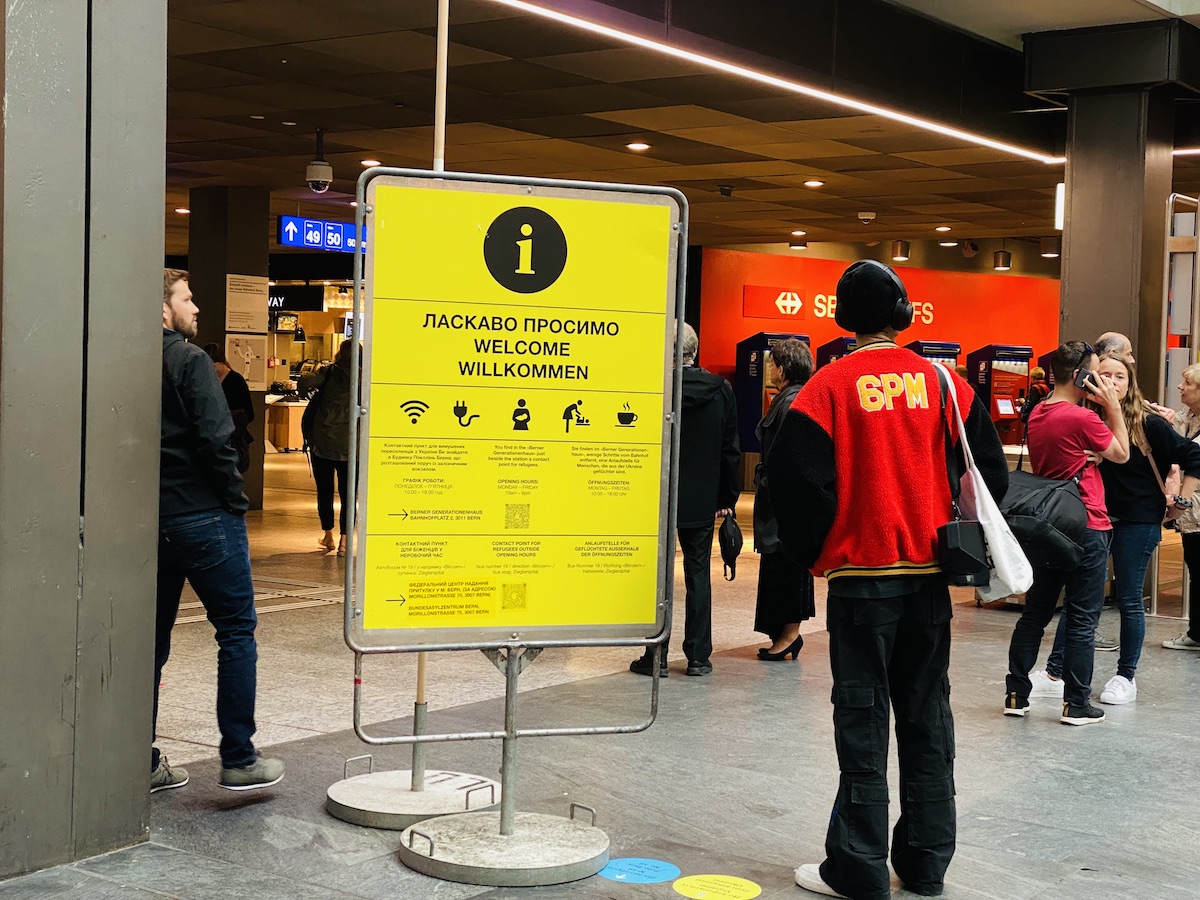 Стенд с информацией для украинских беженцев на бернском вокзале. Фото: Nashagazeta.ch