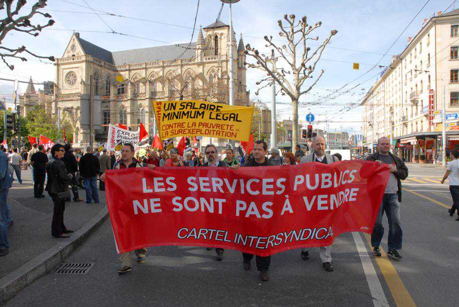 В Женеве собралось около 2'000 демонстрантов - представителей профсоюзов и левых сил, защищающих коллективные рабочие конвенции (CTT).