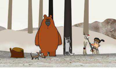 Конечно, отсутствие российских мультов – большое разочарование, однако несколько из 80 фильмов программы женевского фестиваля все же привлекли наше внимание. Начнем с ленты « KJFG N°5 », режиссера Алексея Алексеева, представляющего Венгрию. Начинается она с того, как три «профессиональных» музыканта, медведь, волк и заяц, репетируют в лесу. Вдруг охотник выбегает…