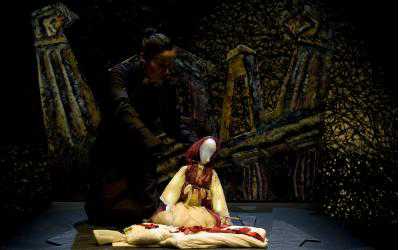 Знакомо настолько, что комментарии, я думаю, излишни. В кукольном спектакле роль хора исполняет семейство стервятников, что тоже символично. Но и тут все не просто. Дочь-стервятница не хочет клевать мертвого принца, отказывается выходить замуж за нелюбимого родственника, влюбляется в чужака-ворона и собирается улететь с ним в дальние края вить гнездышко. Замысел не удался – папа-стервятник (чуть не написала «стервец») силой вручает дочь выбранному им жениху. Вот вам еще одна трагедия.