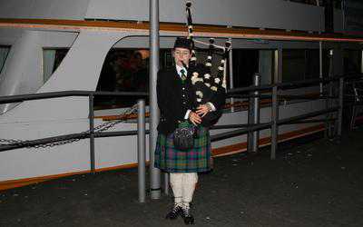 Пока мужчины в тепле рассуждают о виски и футболе, с улицы доносятся печальные звуки волынки. У входа на корабли на цюрихской стуже дует в меха одинокая волынщица. Женщина в юбке. Моветон.