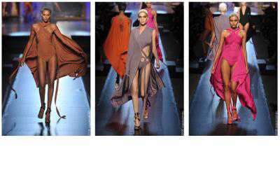 Коллекции Жана-Поля Готье, которого все во Франции любят уже более 30 лет,  всегда тематические, и нынешняя посвящена современному танцу. Точнее, репетициям. Модели убрали волосы под шапочки и надели купальники с длинным шлейфами, эластичные рейтузы на подтяжках, многослойные топы, пижамного вида костюмы и распашонки, которые завязали крест на крест на спине, как бродвейские танцовщицы на разминке.