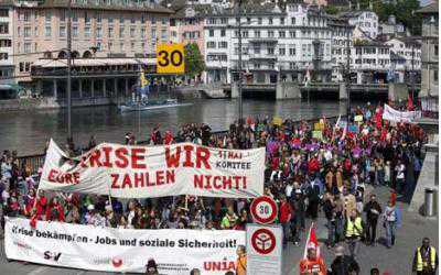Если в прошлые годы организаторам кортежа было не так просто собрать участников в плотные ряды, то в этом году им даже не нужно напрягать свою фантазию, - с иронией подчеркивает обычно бесстрастное Швейцарское телеграфное агентство. Такие темы, как мировой финансовый кризис, миллионные банковские премии или повышение уровня безработицы естественным образом помогают профсоюзным организациям мотивировать людей и вывести их на улицу.