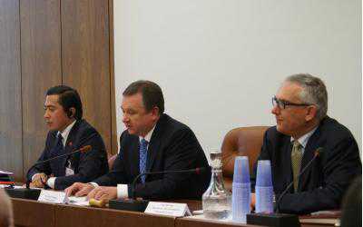 Премьер-министр Киргизии Игорь Чудинов (в центре) говорит о потенциале своей страны. (НГ)