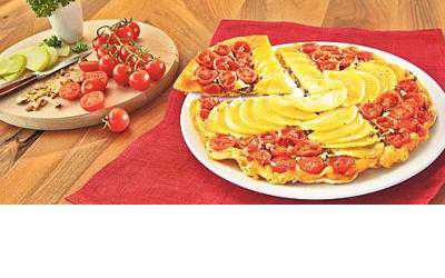 В особенный день – особенная закуска. Удивите своих гостей пирогом Татен в цветах швейцарского флага.