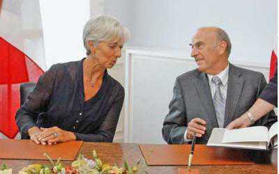 Министр экономики Франции Кристин Лагард и Х.-Р. Мерц на церемонии подписания соглашения (Keystone)
