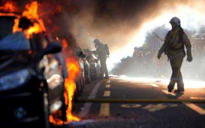 Свидетели с изумлением и осторожностью наблюдали за полицейскими силами, которые были на месте, но даже не пытались вмешаться. Дальше, по пути к вокзалу, манифестанты подожгли четыре стоящих друг за другом автомобиля, и дым от них буквально затмил небо.