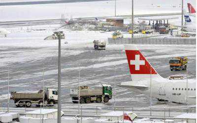 В Цюрихе снега выпало меньше: аэропорт Клотен работал в обычном режиме.